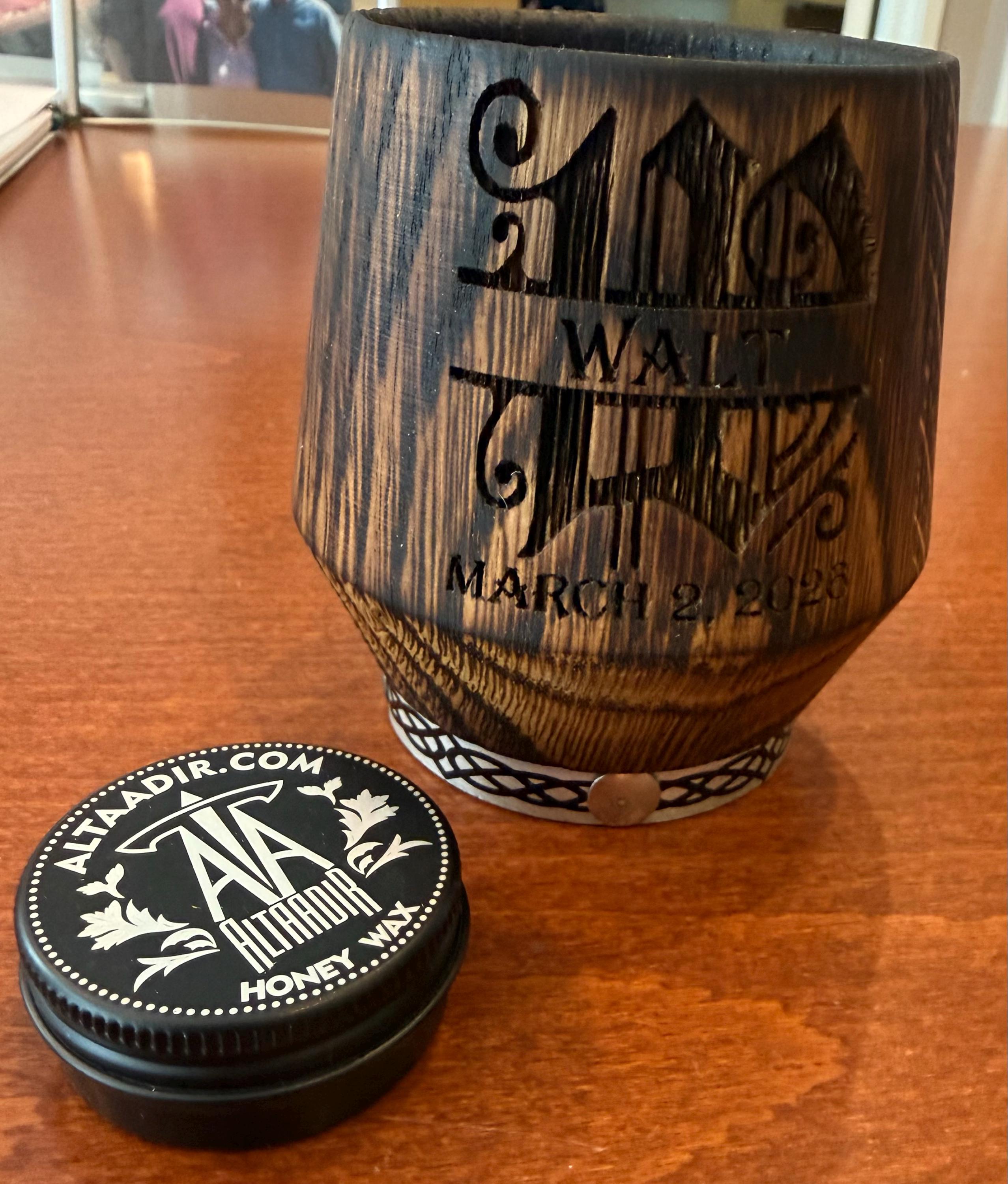 Elevate your whiskey ritual with this Personalized Whiskey Glass. Each tumbler is handcrafted from charred oak, flame-treated inside to enhance aroma, and finished with natural beeswax for lasting beauty. The deep wood engraving makes every glass unique and personal.